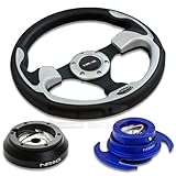 | ✚✚✚ NRG-SRK-160H+001SL+650BL, NRG Innovations 12.5" 320mm Black Leather Silver Trim Racing Steering Wheel Combo with 6 Hole Short Hub Adapter with Gen 3.0 with Handle Blue Quick Release Kit SRK-160H NRG Quick Release features many options that conventional ball-locking quick release system do not. It is specially engineered with raised sections to prevent the scratching and stretching of the hub while a self locking feature adds increased safety and functionality. Features racing styled for added style and look. Each unit is made from the highest quality aircraft grade aluminum and is anodized for maximum durability and finish.