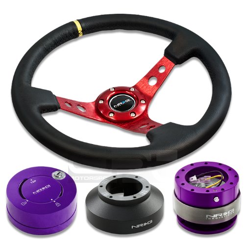 NRG-SRK-105H+200PP+101PP+006RDY, NRG Innovations 13.78" 350mm 3" Deep Dish Style Black Leather Yellow Center Marking Red Spokes Racing Steering Wheel Combo with 6 Hole Short Hub Adapter with Gen 2.0 Purple Quick Release with Purple Lock Hub Kit SRK-105H?