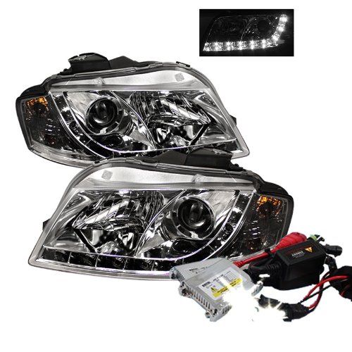 High Performance Xenon HID Audi A3 DRL LED Projector Headlights with Premium Ballast - Chrome with 10000K Deep Blue HID